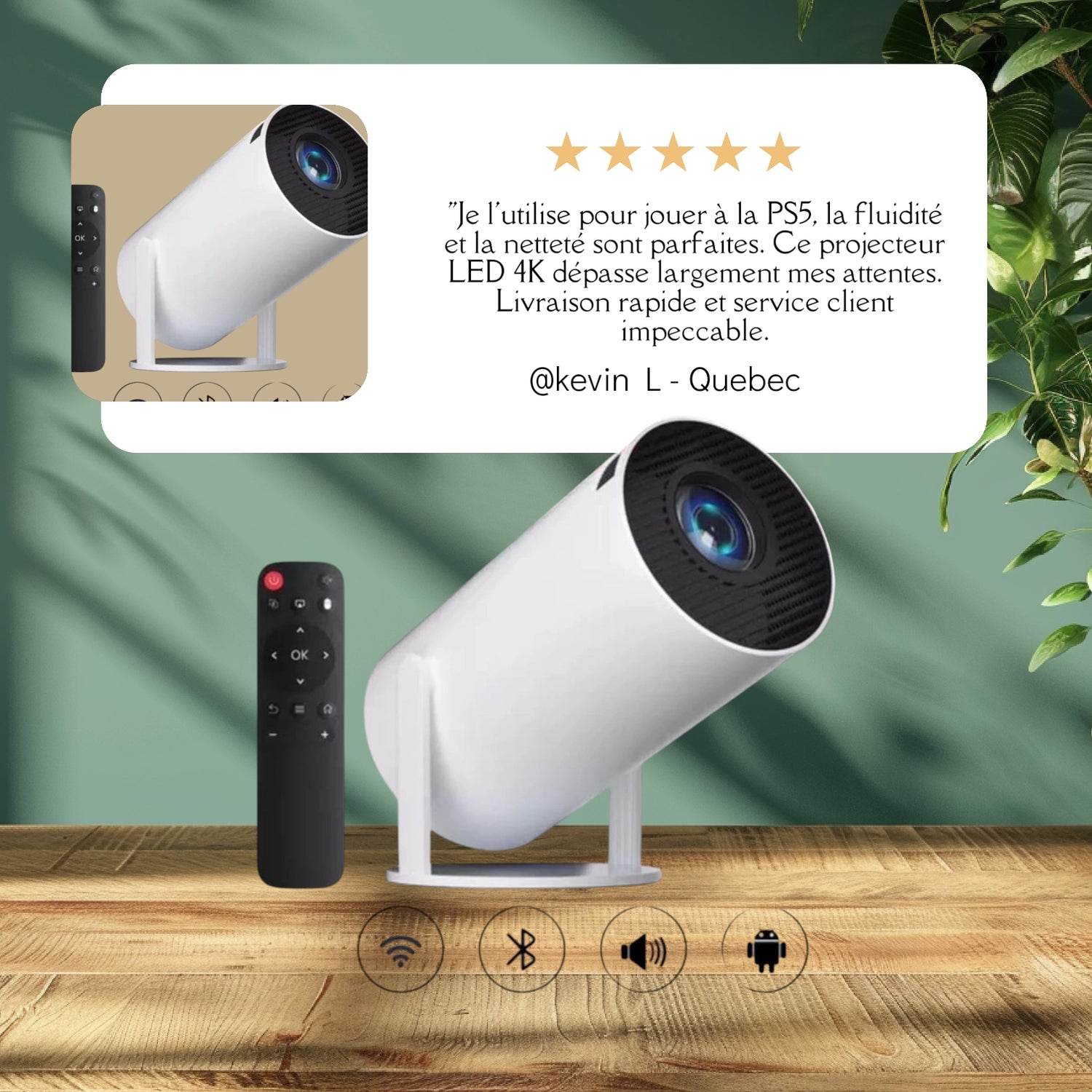 Oui ! Il suffit de le brancher, connecter votre appareil (smartphone, console, PC) via HDMI, Wi-Fi ou Bluetooth, et de profiter d’une image nette et lumineuse. Aucune configuration complexe n’est nécessaire.